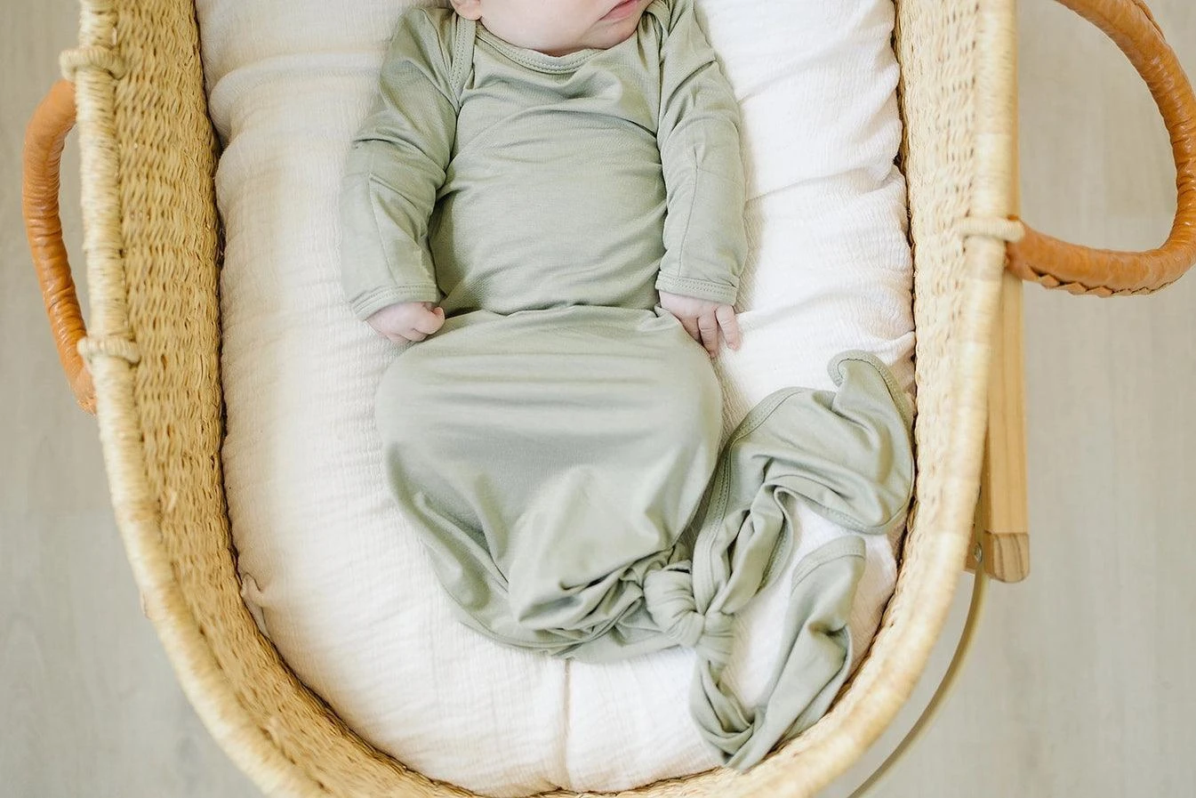 Bamboo is one of the softest and most eco-friendly fabric choices for your little one, and will keep your baby comfortable in all seasons. Our gowns are made with high quality stitching, and will not lose their softness over time. Designed to be soft and delicate on your baby’s skin, our gowns will provide the perfect amount of stretch and comfort for you little one. The length of the knot is adjustable to allow your baby to grow with the gown.