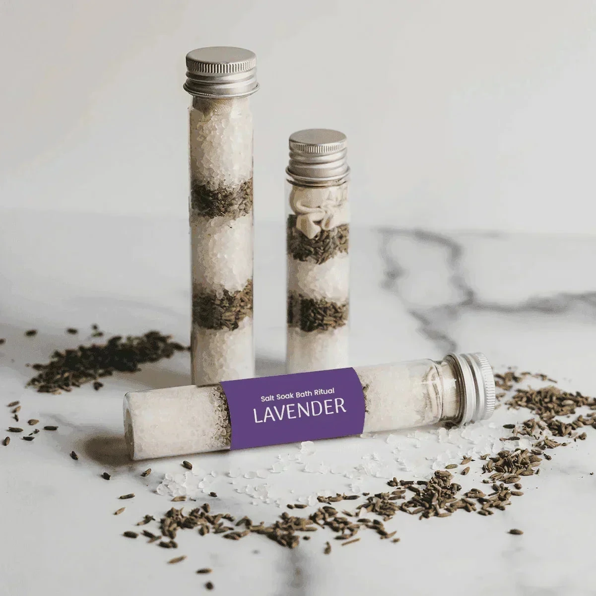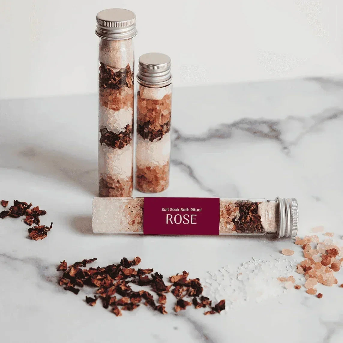 These gorgeous salt tubes are formulated with a variety of herbs, salts, and essential oils and can be used for one or two baths per tube.