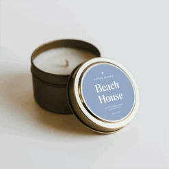 Immerse yourself in the serene ambiance of a secluded beach house with the Beach House Gold Travel Candle.