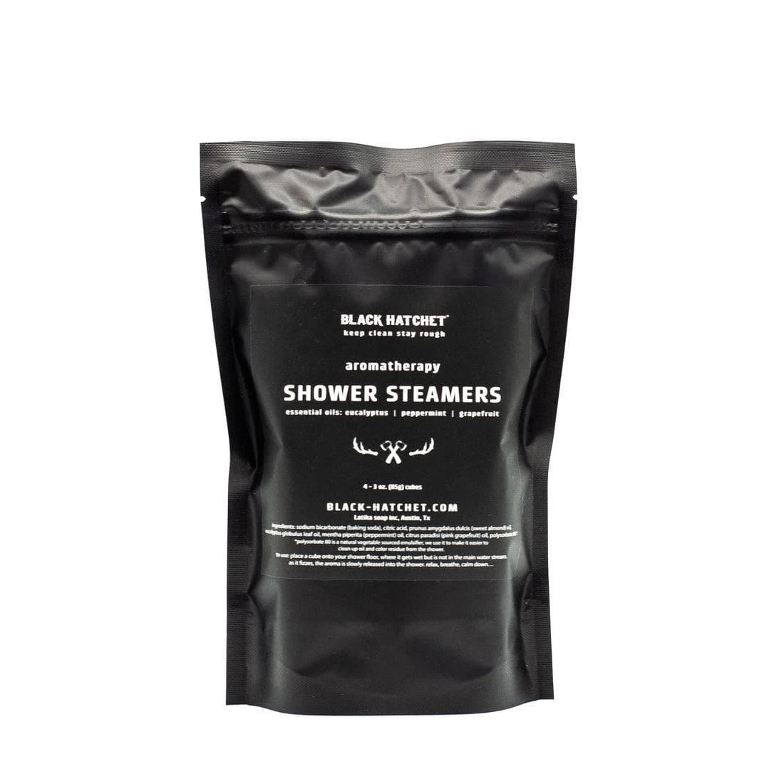 Scented with grapefruit, mint, and eucalyptus essential oils. Each of these essential oils was chosen from the key scents in the 3 Black Hatchet collection.