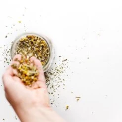A calming blend of chamomile and herbs. Chamomile Mint is a naturally sweet and minty tea, simply blended with 3 ingredients.