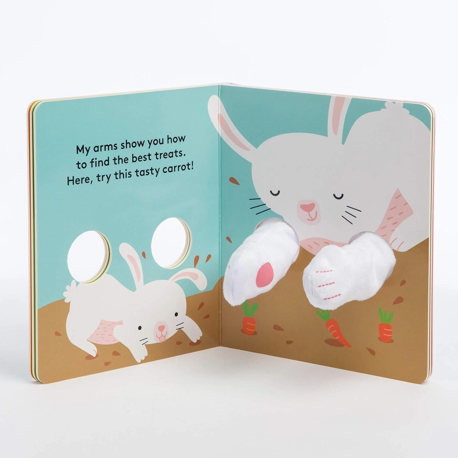 Adorable illustrations and two plush finger puppet arms make for a cozy, interactive reading experience for babies and their loved ones.