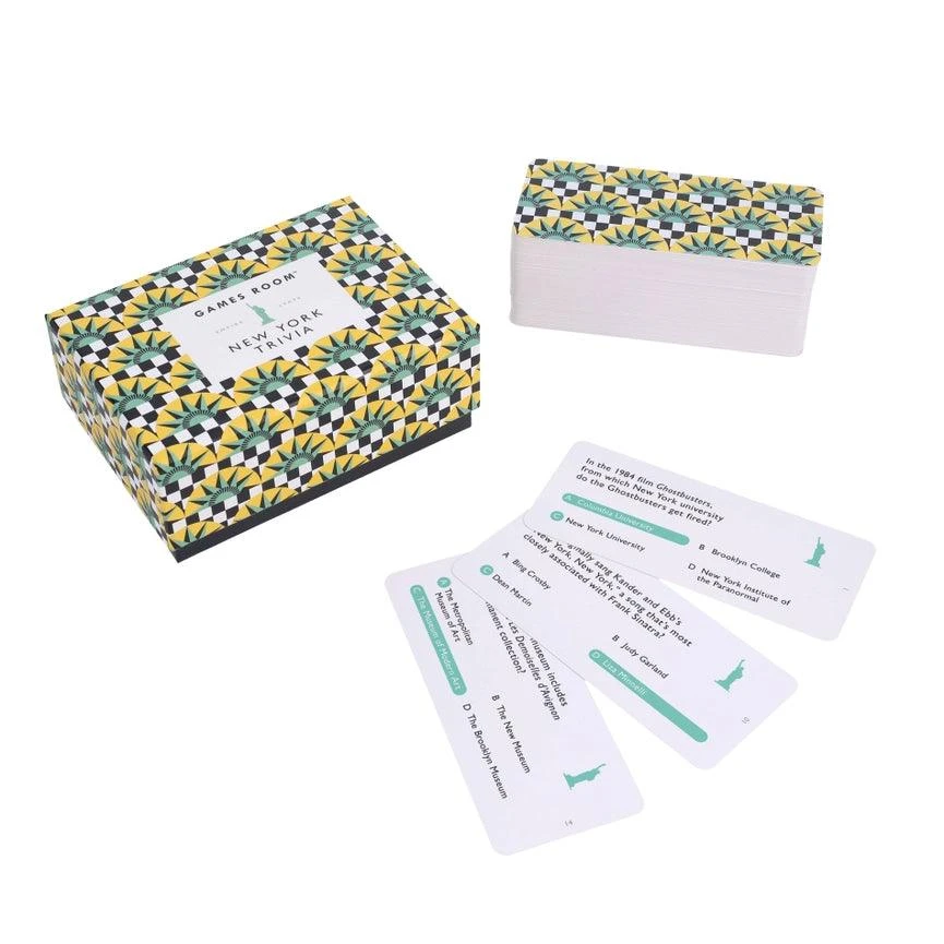 Kick off a trivia party in a New York minute! Housed in a chic and portable box, these 140 multiple-choice questions offer a fun trivia challenge wherever you want to play! Clever questions that take you from Niagara Falls to the Big Apple make this the perfect game for New Yorkers and anyone who has ever been in that New York state of mind!