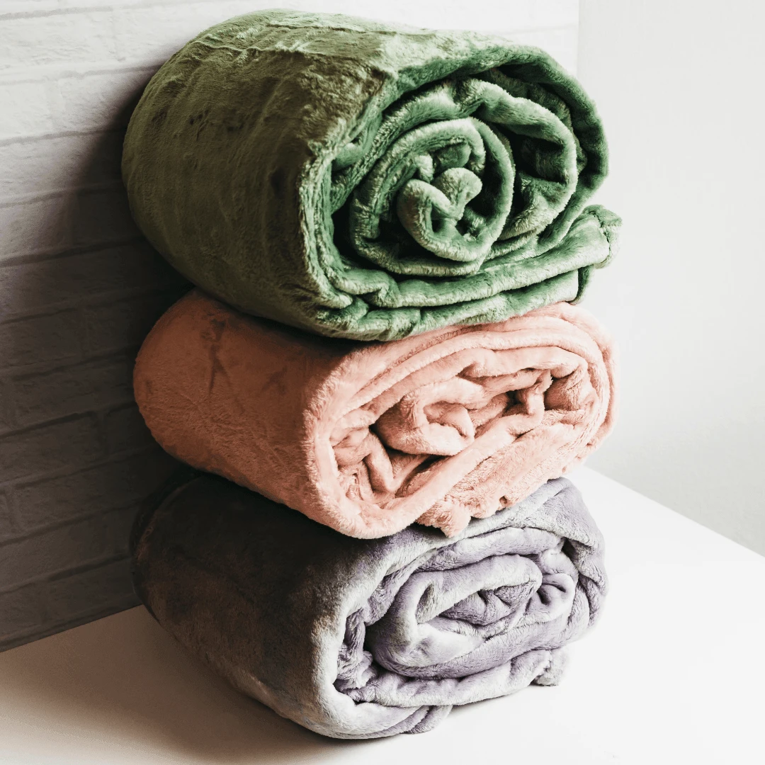 Packaging: All blankets come shrink wrapped for easy transport. This keeps them sanitary and allows us to fit them inside our signature white gift boxes. When the plastic wrap is cut open, the blankets will fluff right up.