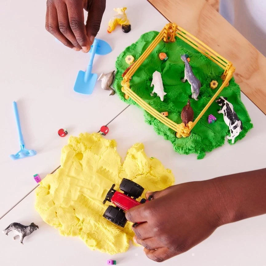 Immerse your little ones in this complete sensory activity filled with soft and stretchy cloud clay, farm animal toys, clay stamps, tools, and various sensory toys to touch and explore.