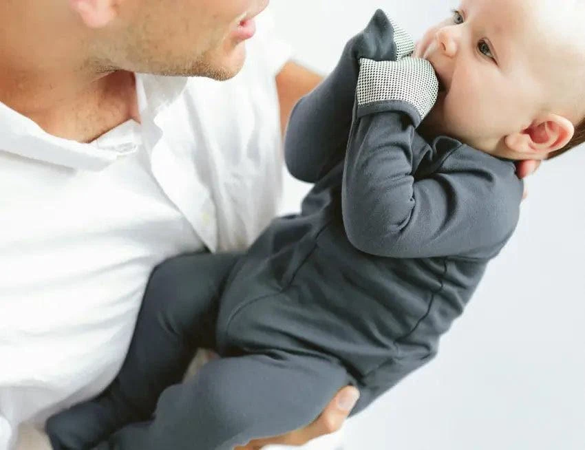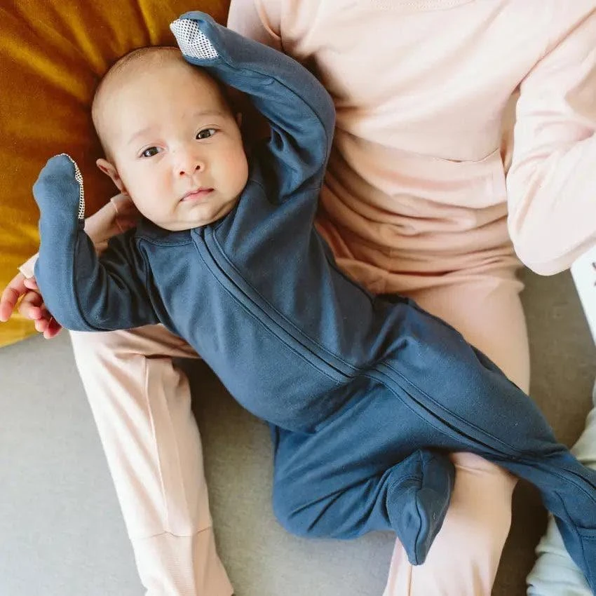 - Baby pajamas with a two-way zipper that make diaper changes easy