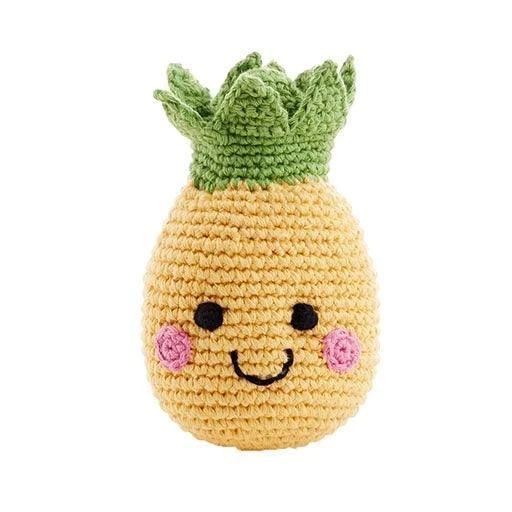 - Materials: 100% cotton with 100% polyester fill. This toy has a rattle.