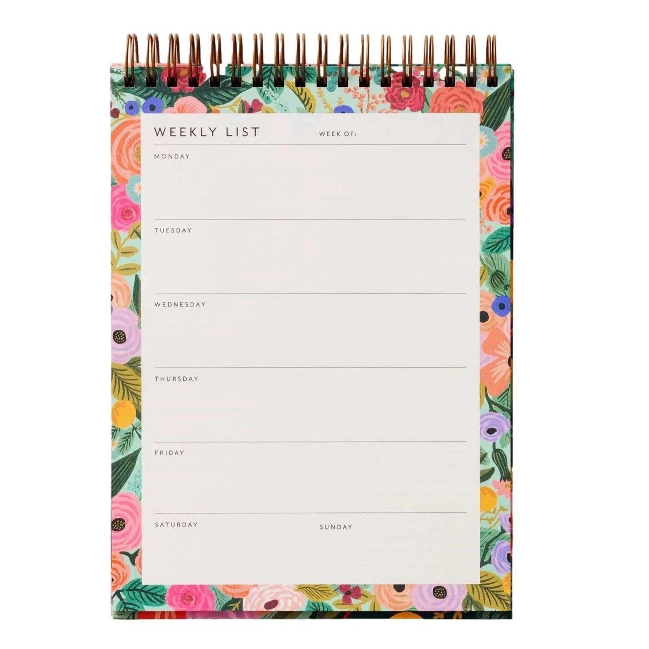 A weekly planner designed for display. 52 undated pages have a space for every day of the week, with room on the back to make lists and jot down notes.