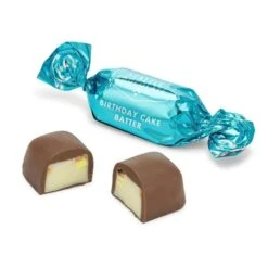 A party in a box! Open this gift box to find a surprise confetti assortment of 6 favorite truffle flavors, including Birthday Cake Batter. Decorated with whimsical doodles of a slice of cake, a party hat, and candles. This box wishes someone a very special “happy birthday!”