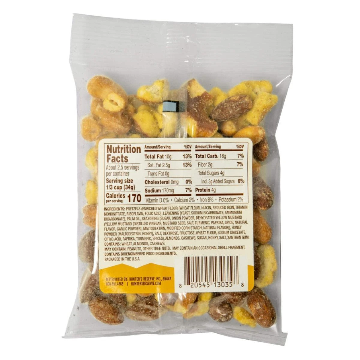 Experience the perfect harmony of sweet and savory with our Honey Mustard Pretzel Trail Mix. Created with care, this delightful mix features honey mustard & onion pretzels, dry roasted honey almonds, and dry roasted honey cashews.