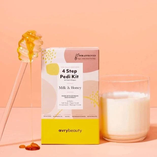 Milk & Honey infused 4-Step pedi kit is the perfect remedy for dry, irritated, or itchy skin! This kit includes a pre-packaged sea salt soak, sugar scrub, cream mask and massage cream for the cleanest spa service.