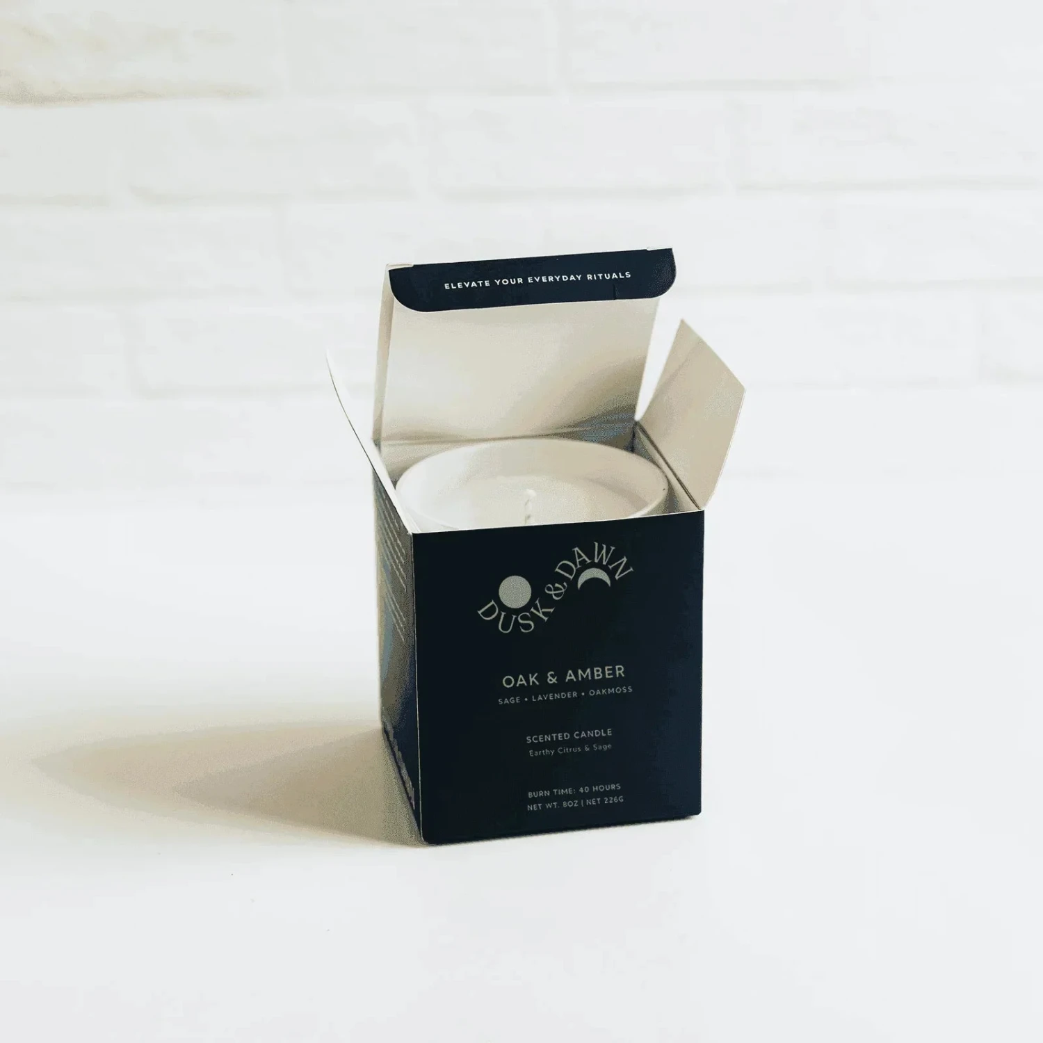 Elevate your travels with our Oak & Amber Deluxe Soy Candle – a compact escape to pure bliss.