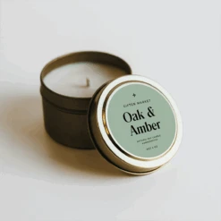 Elevate your travels with our Oak and Amber Travel Candle – a compact escape to pure bliss. This best-selling scent boasts a universally appealing blend of rich woody oak, musk, aromatic sage, and lavender, wrapped in warm amber.