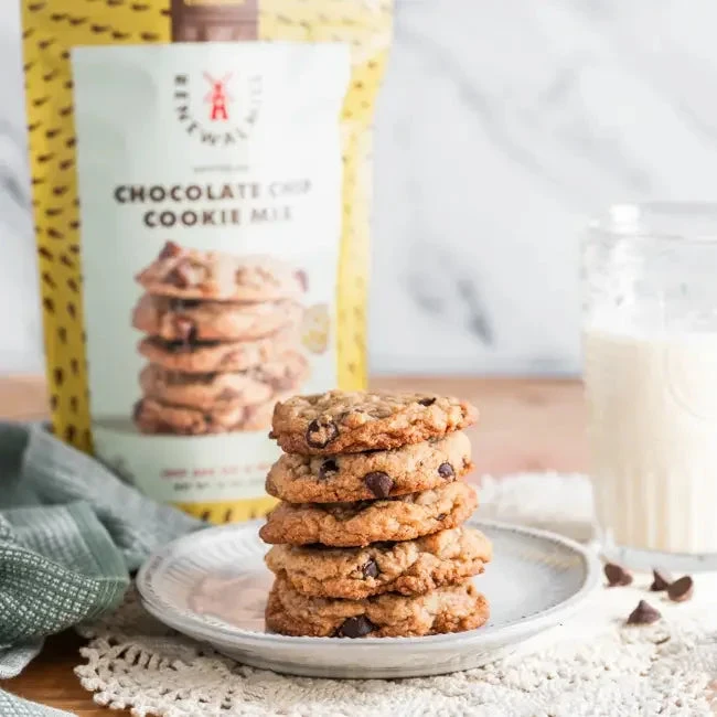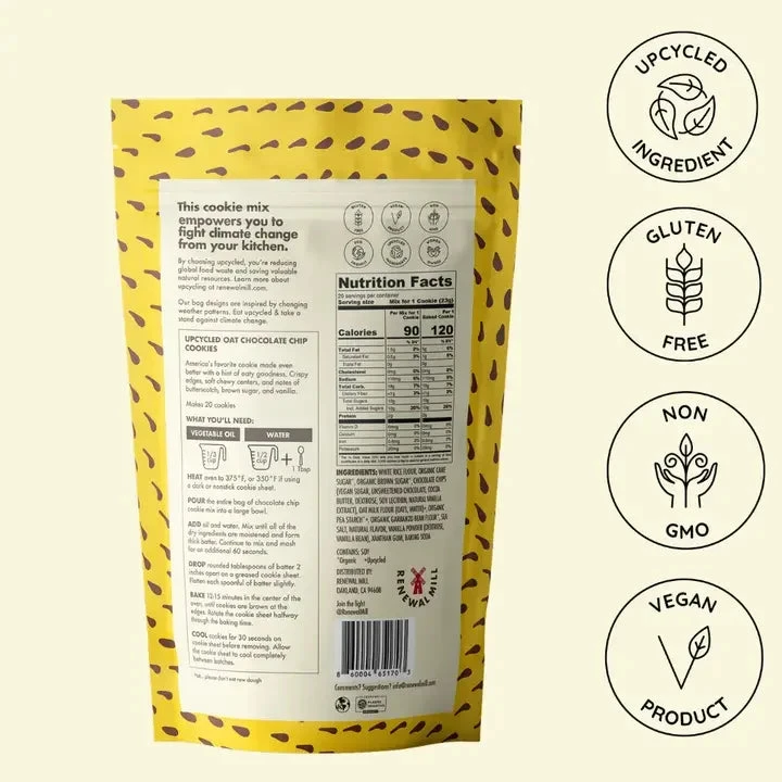 This “just add oil & water” vegan, gluten-free chocolate chip cookie mix features planet-friendly, upcycled ingredients like oat milk flour.