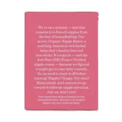 Organic Nipple Butter works hard to moisturize dry skin, and bring nipples back to their happy place with an organic and wonderfully smooth plant-based blend. Calendula-rich, lanolin-free and non-sticky, Organic Nipple Butter was the first Non-GMO Project Verified nipple cream.