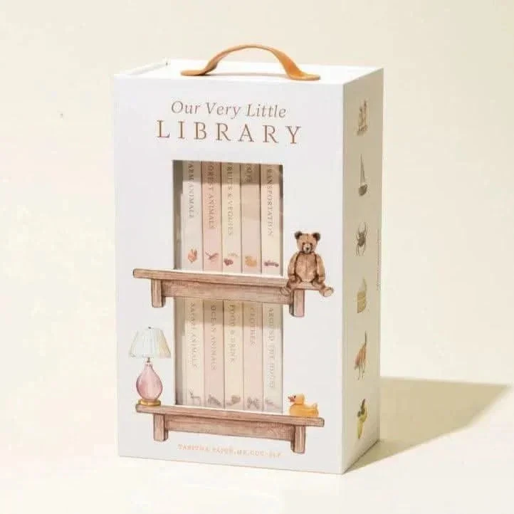 Our Very Little Library Board Book Set includes 10 board books that feature foundational words in the following categories: