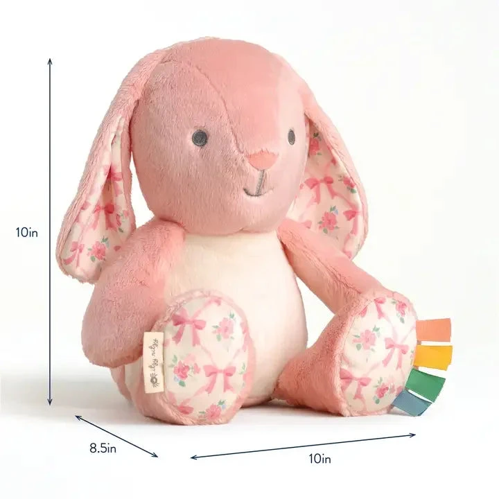 Features multiple soft fabric textures and ribbons for sensory exploration and promotes self-soothing.
