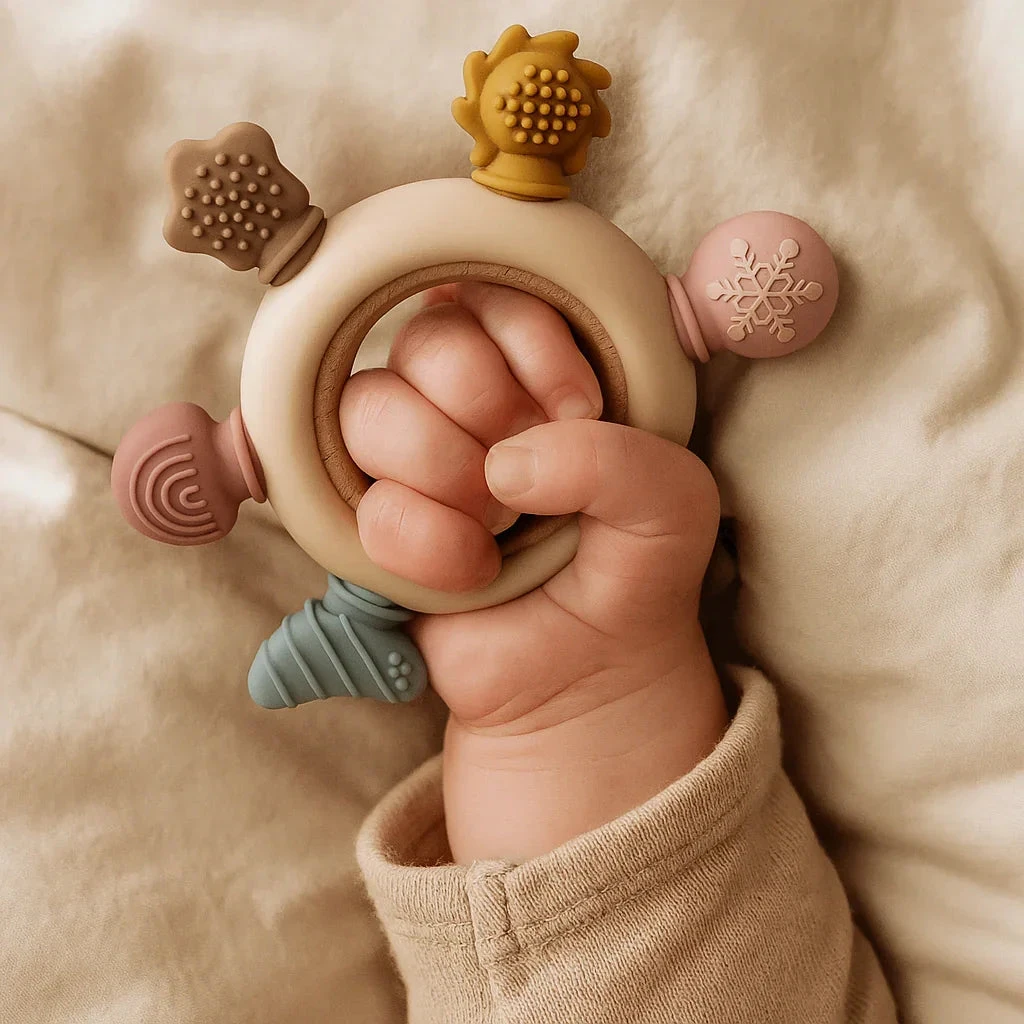 Made from safe, food-grade silicone and real polished beech wood, it’s durable, easy to clean, and a must-have for diaper bags, making teething troubles easier anytime, anywhere.
