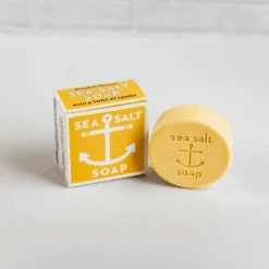 The Sea Salt Lemon Soap features our classic sea salt scrubbers with a twist of lemon citrus oils. Its zesty fragrance is warm and uplifting, like sunshine in a box. These beautiful bars are made in small batches with all-natural ingredients.