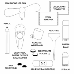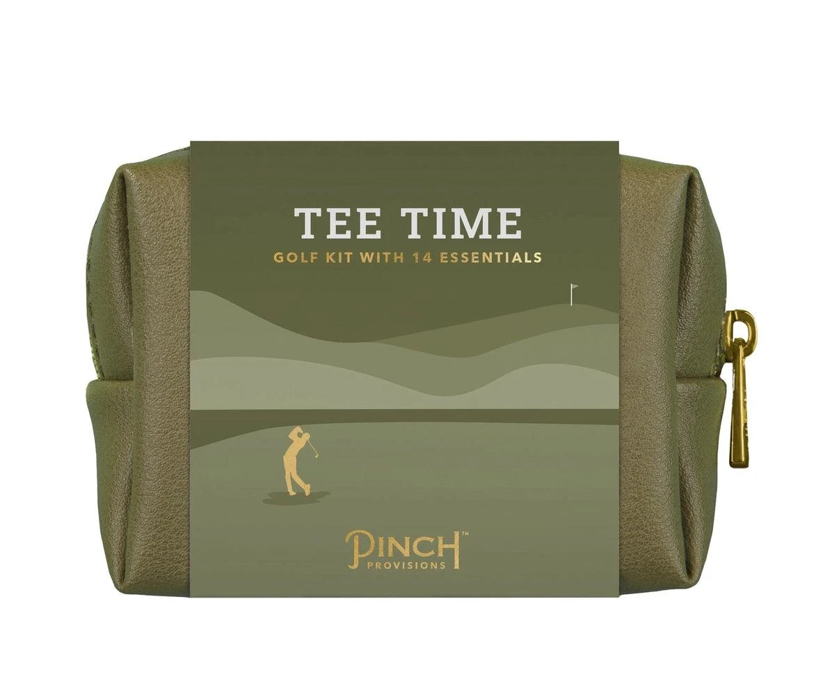 Master your game with our new “Tee Time” Golf Kit. This olive green vegan leather pouch is filled with 14 must-haves.