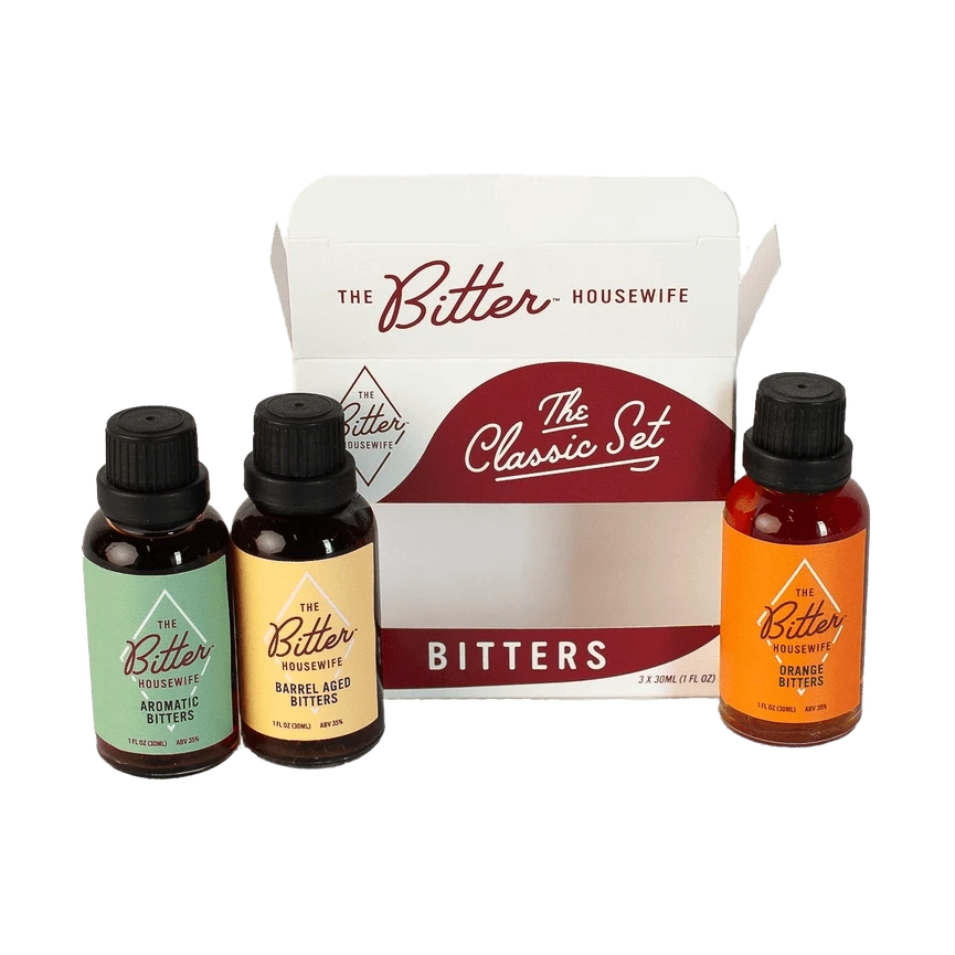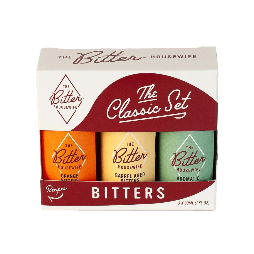 Each Classic Set includes 30 ml bottles of Barrel Aged Bitters, Aromatic Bitters, and Orange Bitters.