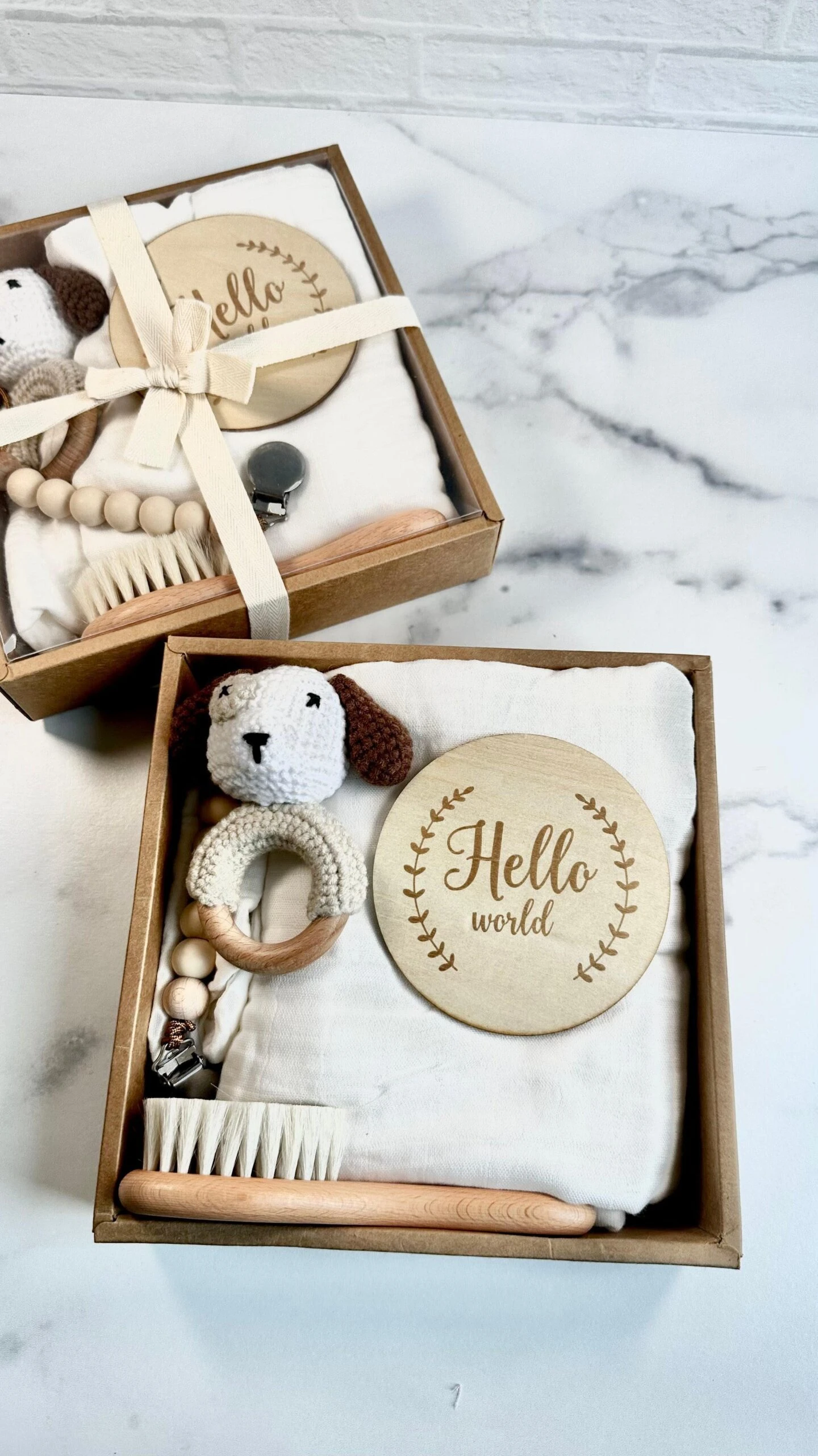 Inside, you’ll discover a collection of essentials designed for comfort and style, making it the perfect gift for baby showers or welcoming a new arrival.